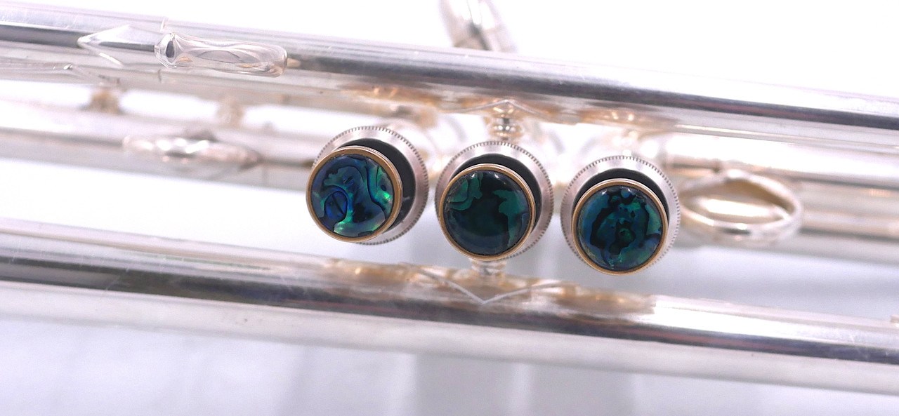 Check out this awesome Bach B1 Commercial Large Bore Trumpet That just came in on consignment. This horn is a ton of fun to play and has a great sound perfect for lead work, or as the name suggest great in a commercial setting as well. This is a pre owned instrument and does present some signs of use. There are signs of red rot in the leadpipe and main tuning slide, which will require eventual replacement. There is some wear in the silver plate on typical contact points of the instrument. as well as some minor scratching and a few pings in the second valve slide and bell. Beyond this the horn looks great and plays wonderfully. Check out those super cool custom finger buttons too!
