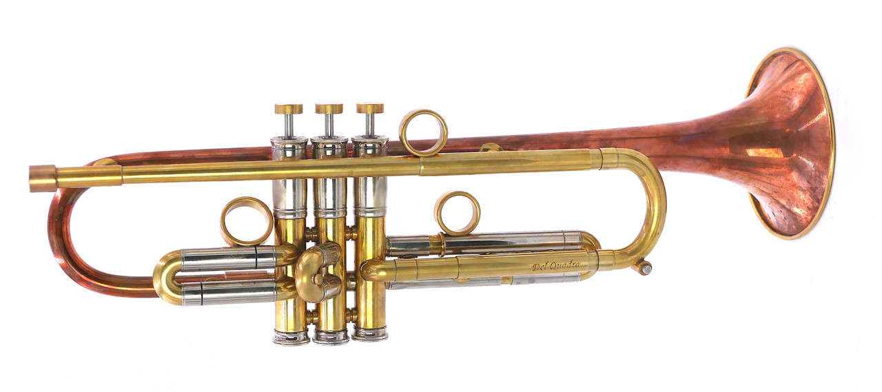 "The initial design idea behind the Grizzly was to design a trumpet that gave the player a little bit more to lean on than the Personal model. The bell design of the Personal makes it feel much larger (to many players) than it’s actual ML bore. I started with measurements of lots of my favorite trumpets and kept coming back to many of the old Benge designs.. some of my favorite. I always loved the CG benge, but when I would played on them, in the end they always felt just a little too big for me. I always loved the feel and of course the undeniable Benge sound of the instruments. I wondered how it would feel if I made a similar design in a medium large bore with one of my signature copper bells and a similar unique bell tail design that the CG benge had…. and we end up with the Del Quadro Grizzly."