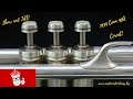 The Conn 40A long model cornet has an artistic, Art Deco design concept. Every part of the horn incorporates Art Deco details, from the mouthpiece receiver to the rimless bell. One key difference between the 40A and most modern instruments is the tubing wrap; the third valve slide is on the right of the tuning slide rather than on the left. The design concept continues through the recessed water keys, faceted valve casings, bracing, and valves caps. But ultimately, it's the rimless edge that steals the show!